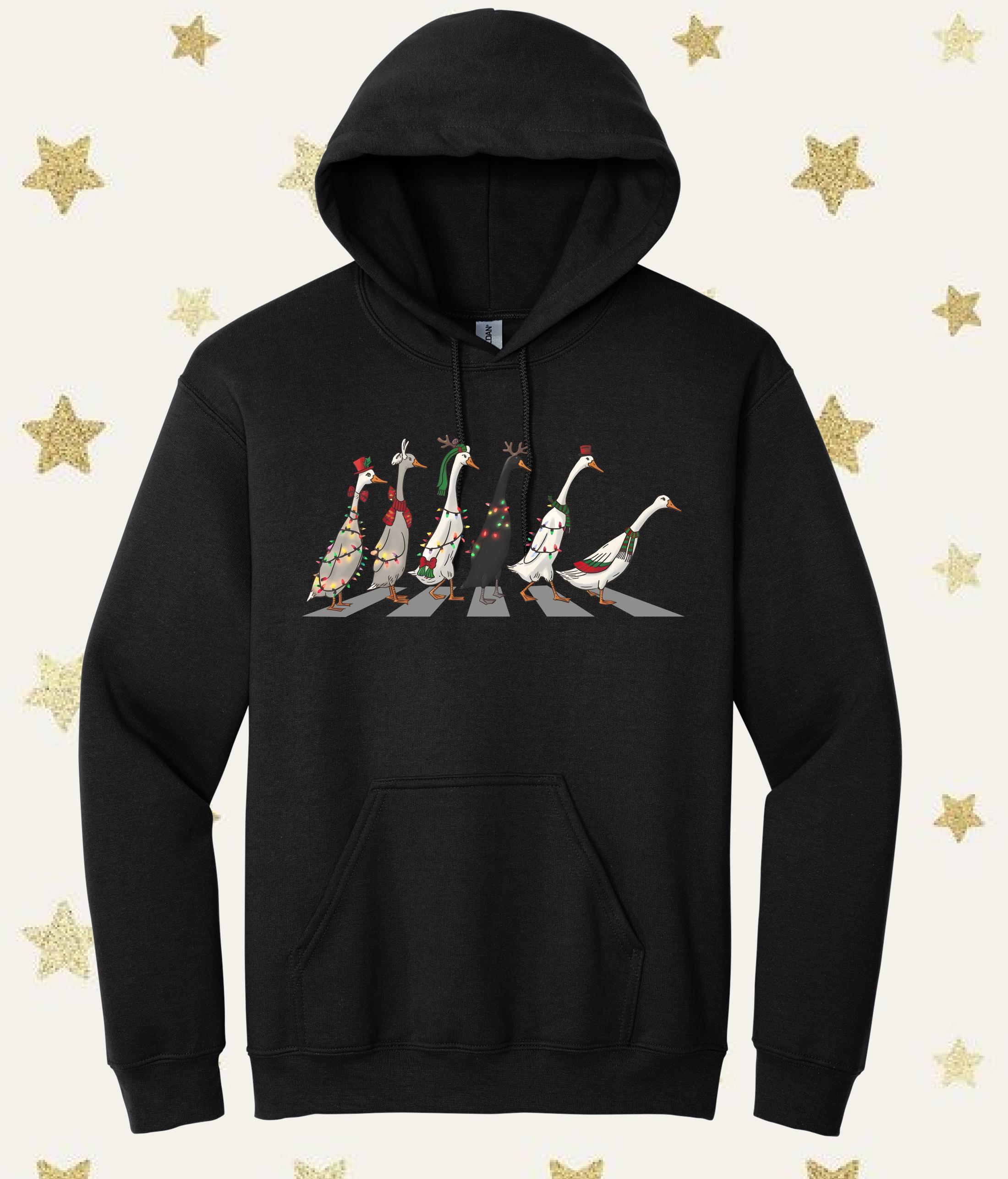 Bring holiday cheer wherever you go with this cozy Christmas Geese Parade Hoodie. Featuring a playful print of geese dressed up in festive scarves, hats, and string lights, this hoodie perfectly combines warmth and whimsy. Made from soft, high-quality fabric, it’s designed for comfort, whether you’re out enjoying chilly winter days or relaxing at home.
